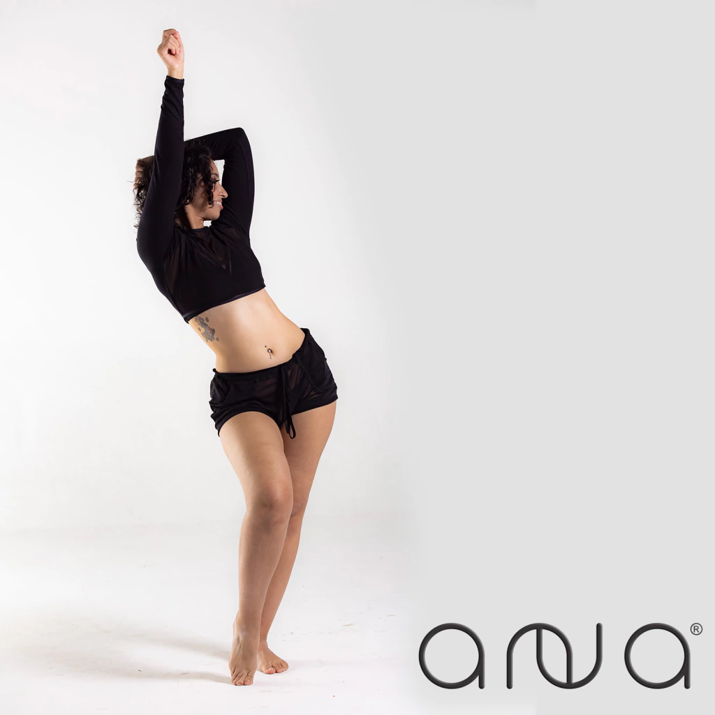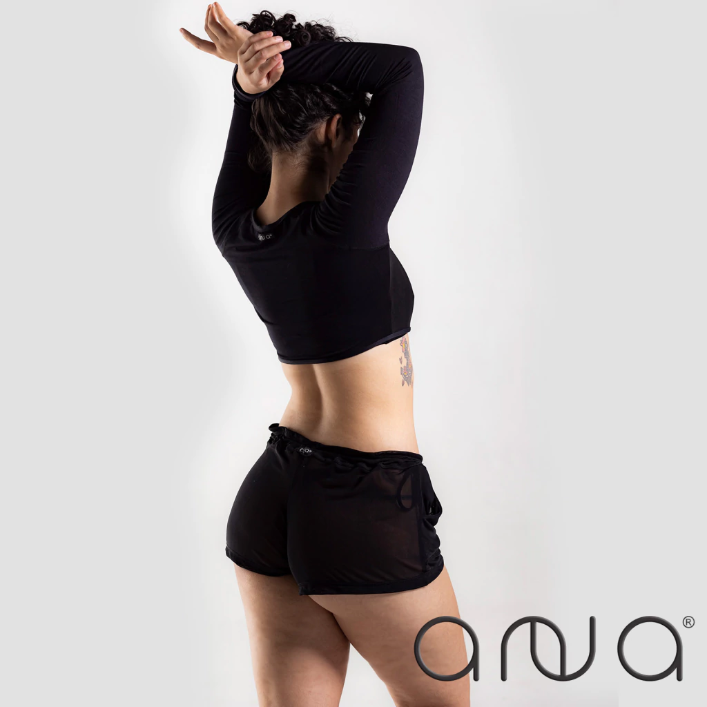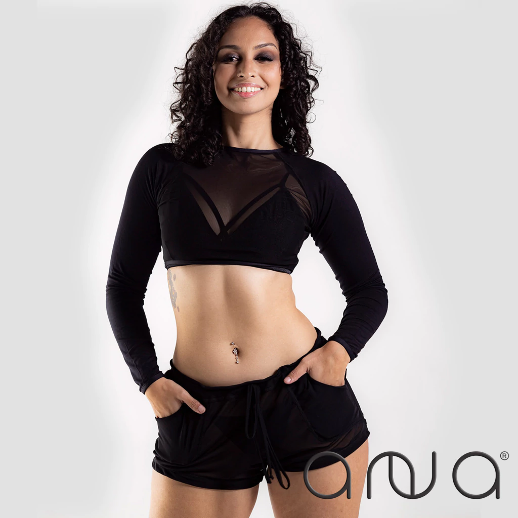 Feito em tule leve e com elastano, ele proporciona frescor e liberdade de movimento, tornando-se ótimo para aulas de pole dance e heels.